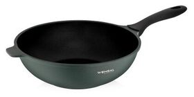 Литой алюминий, толщина дна 4,5-5,2 мм. Ручка из термостойкого пластика. Внутреннее двухслойное антипригарное покрытие Xylan plus. Можно пользоваться деревянными, силиконовыми и пластиковыми лопатками. Внешнее термостойкое покрытие. Работает на любых типах плит. Пригодна для мытья в посудомоечной машине.