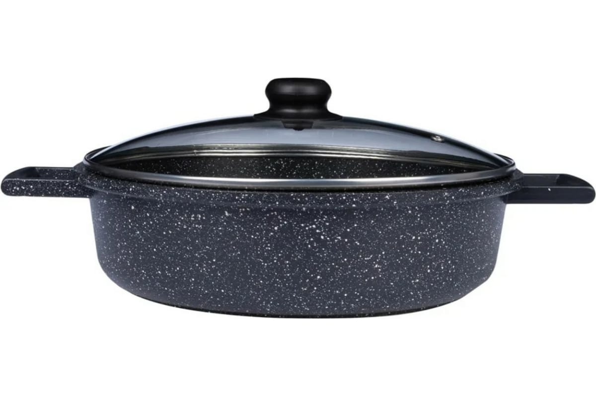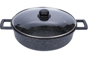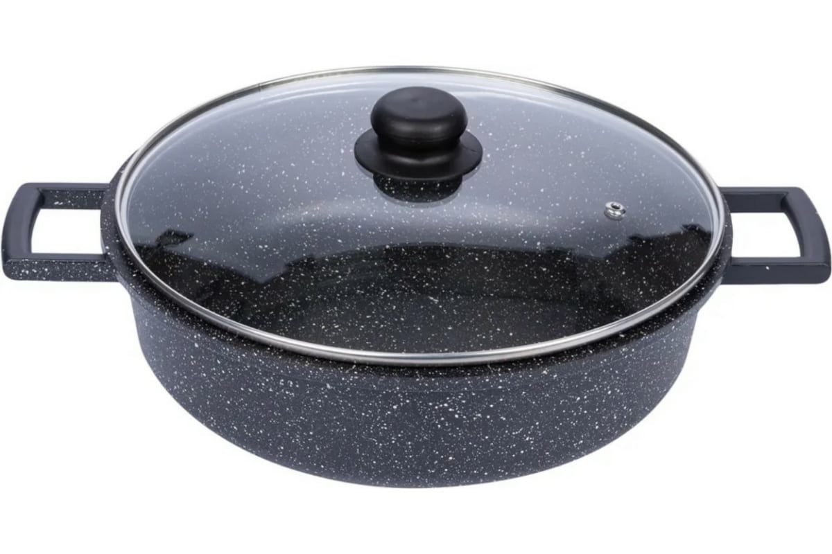 Сотейник с крышкой CASTA AV-28-СТ сотейник 28 см со стеклянной крышкой Сотейник Casta выполнен из алюминия, который обладает не только превосходными теплораспределительными свойствами, но и устойчивостью к деформации даже при интенсивном использовании. Антипригарное покрытие не содержит PFOA и абсолютно безопасно для здоровья. Крышка из термостойкого стекла с отверстием для выпуска пара позволяет следить за процессом приготовления без потери тепла. Изделие оснащено двумя ручками. Сковорода подходит для использования на электрических, стеклокерамических и газовых плитах. Можно мыть в посудомоечной машине.