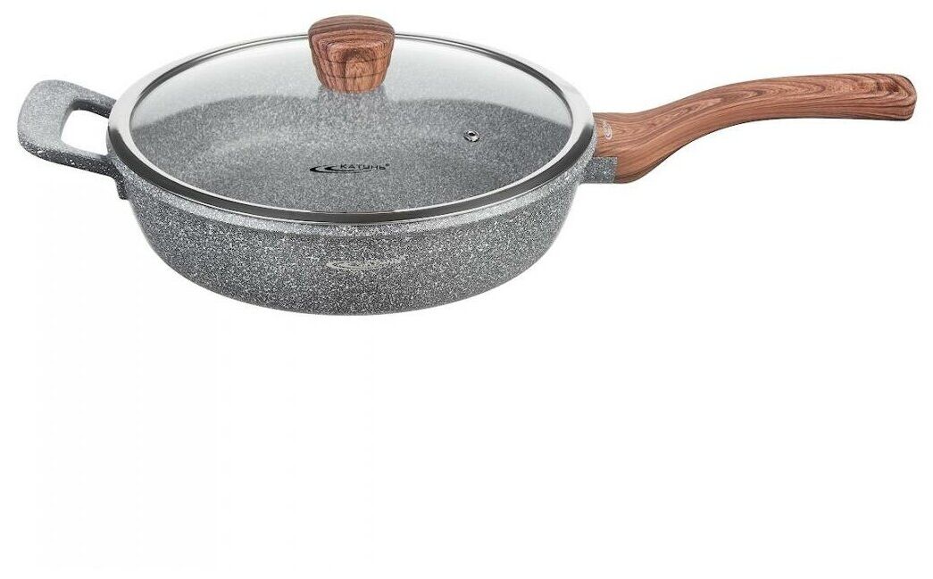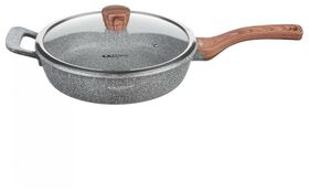 Сотейник 24см с/кр а/пр [пирит] 2,4л литой алюминий,толщина дна 4,5мм ,высота стенок 6,5см ,толщина стенок 1,6мм, эргономичная ручка "soft touch",съемная силиконовая насадка на ручку, индукционное дно ,покрытие Pfluon, цвет: серый, упаковка: цветная коро