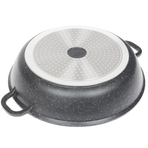 Изготовлен сотейник из литого алюминия, ему не страшны самые высокие температуры, а антипригарное покрытие облегчит процесс ухода за посудой и позволит сэкономить на масле при жарке.