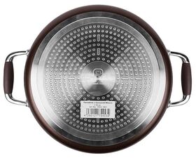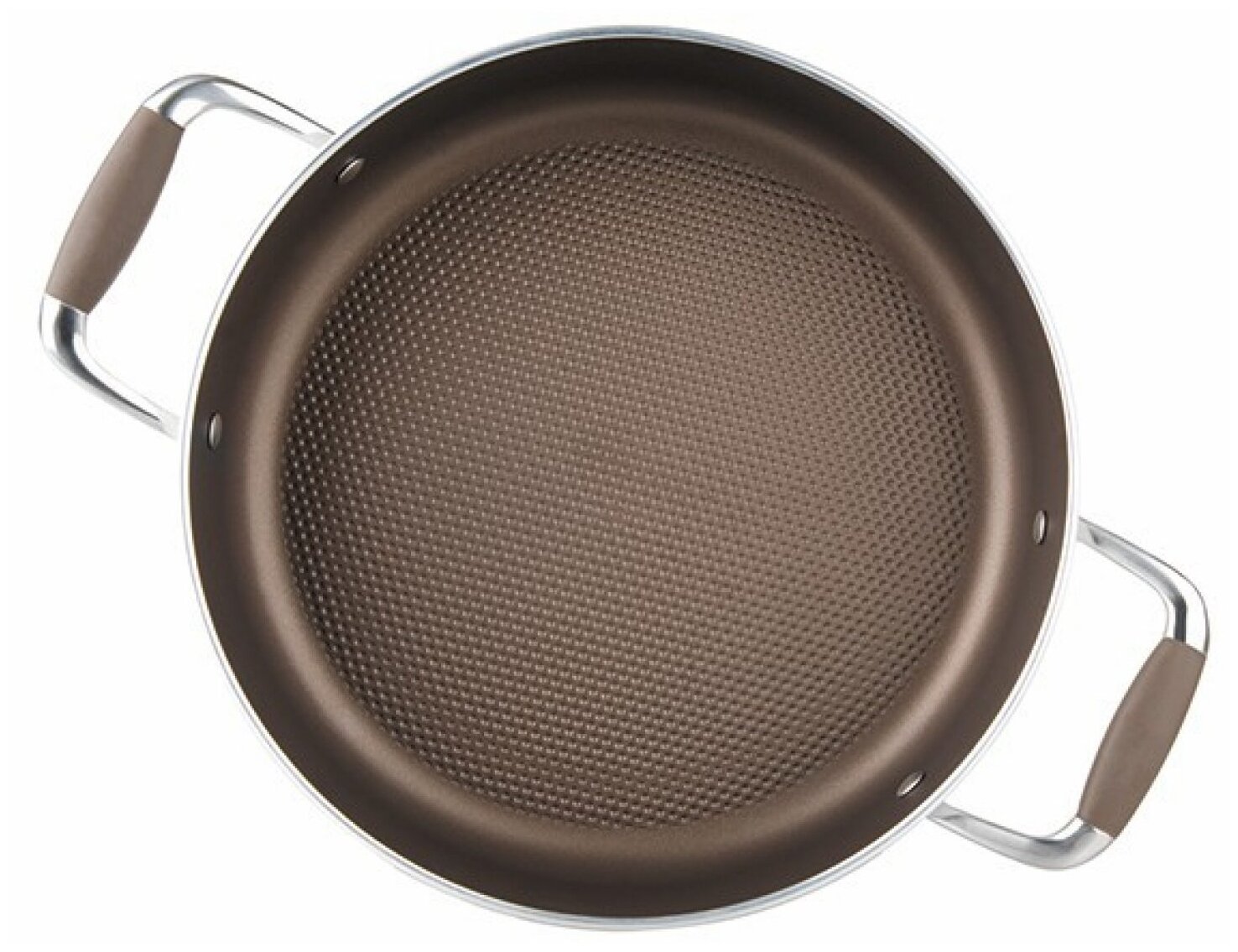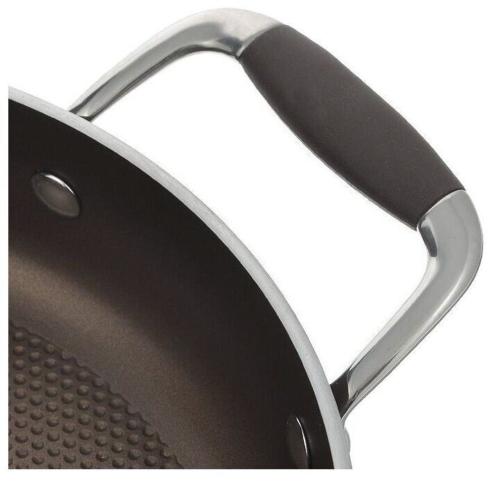 материал крышки: стекло; имеется отверстие для выпуска пара; силиконовый ободок крышки материал ручки: сталь с силиконовыми вставками; марка антипригарного покрытия TriTitan Spectrum; внутреннее дно с микроячейками