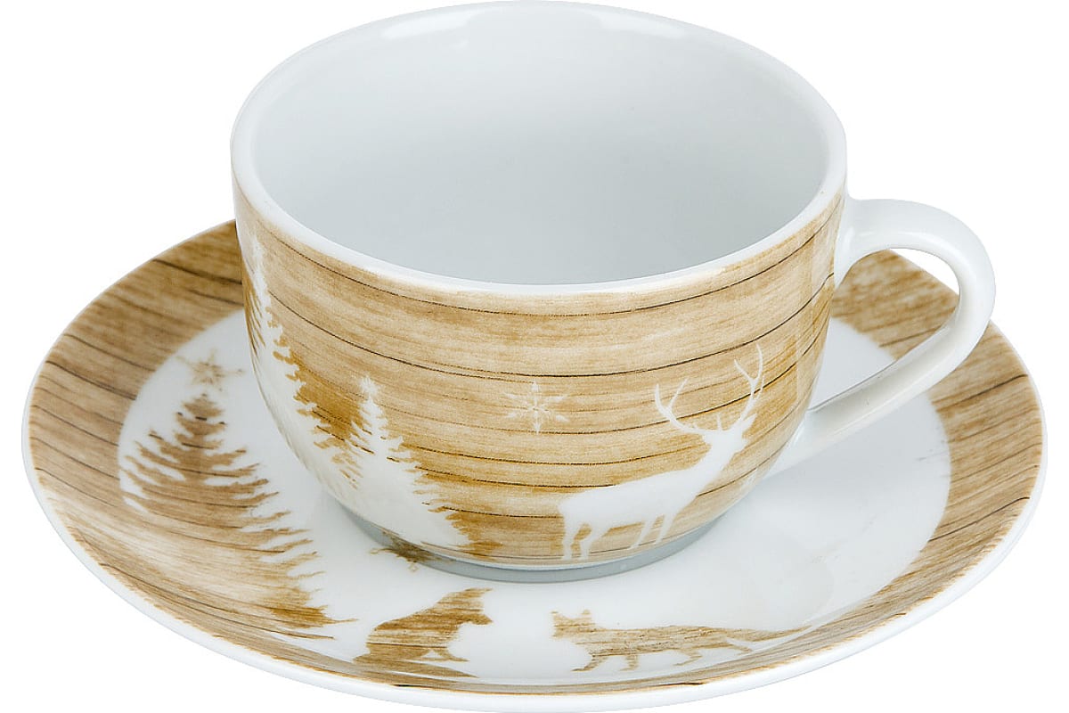 Размер чашки: 11х9х6 см, объем - 220 мл, размер блюдца: 15.5х15.5х2 см.