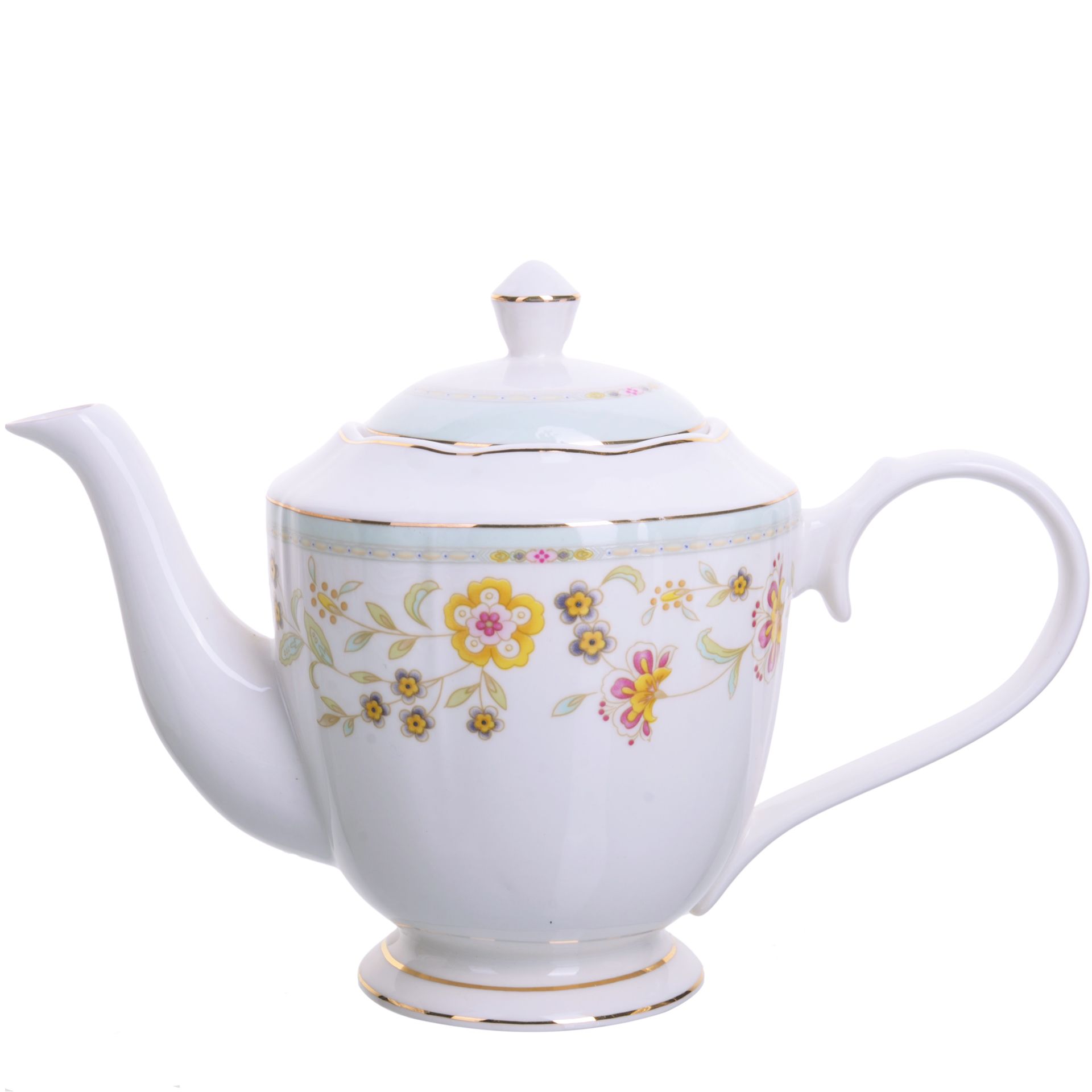 Чайный набор с тарелками на 6 персон изготовлен из качественного костяного фарфора и декорирован нежным рисунком с изображением цветов. Элегантный чайный набор не только украсит сервировку стола, но и поднимет настроение и превратит процесс чаепития в одно удовольствие. Набор состоит из 17 предметов: 6 сервировочных тарелок, 6 десертных тарелок,заварочный чайник с крышкой.сахарница с крышкой, молочник , упакованных в подарочную коробку. Изделия легко и просто мыть. Чайный набор прекрасно подойдет в качестве подарка для родных и друзей на любой праздник! К красивому чайному набору подберите скатерть, столовые приборы и Вы создадите приятную атмосферу праздничного стола. Чайный набор 17 пр LR .