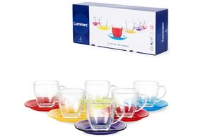 Чайный сервиз состоит из шести чашек и шести блюдец. Предметы набора изготовлены из прочного натрий-кальций-силикатного стекла. Изящный чайный набор великолепно украсит стол к чаепитию и порадует вас и ваших гостей ярким дизайном и качеством исполнения.