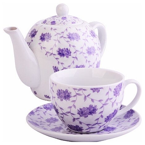 В наборе: 6 чашек 220 мл, диаметром 9 см, высотой 6,5 см, 6 блюдец диаметром 14 см и заварочный чайник объемом 1 литр.
