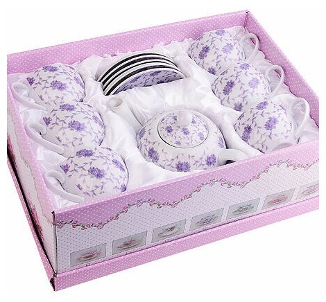 Чайный набор LORAINE на 6 персон выполнен из фарфора высокого качества и оформлен красивым цветочным рисунком.