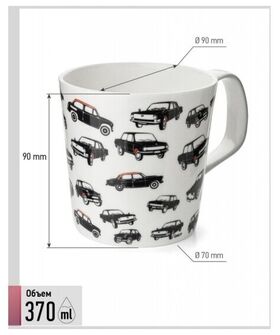 Кружка выполнена из костяного фарфора и предназначена для холодных и горячих напитков. Рекомендуется ручная мойка с помощью щадящих моющих средств. Можно мыть в посудомоечной машине. Можно использовать в микроволновой печи. Материал изготовления: костяной фарфор. Объем 370 мл