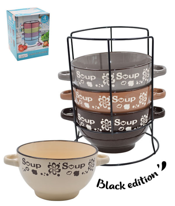 Набор бульонниц на металлической подставке (4шт.) "Суп".