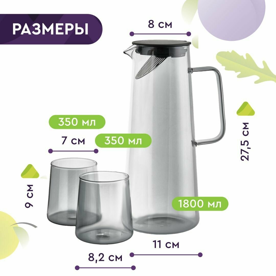 Стеклянный кувшин 1800мл и два стакана 350мл.