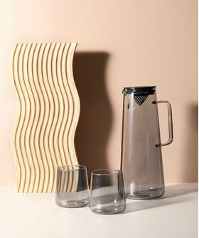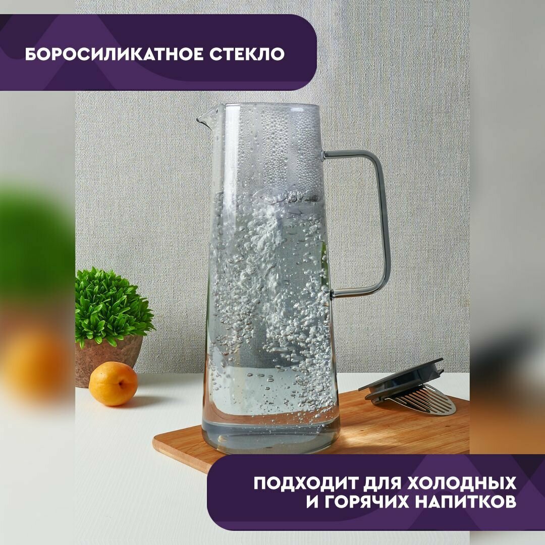 Кувшин выполнен из жаропрочного затемненного боросиликатного стекла.
