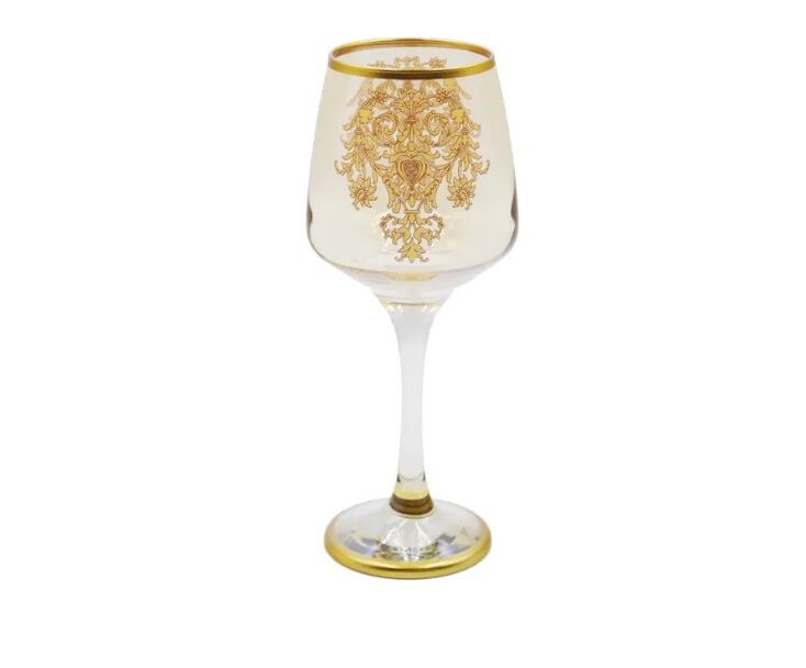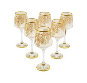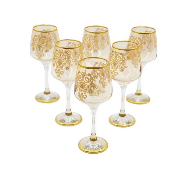 Набор стеклянных фужеров Decores DCS1252 с золотым декором для вина 6 шт .по 350мл."Герб"
