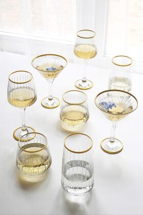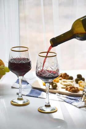 Набор стеклянных фужеров с золотым декором для вина 6 шт. по 350мл."Кристалл"