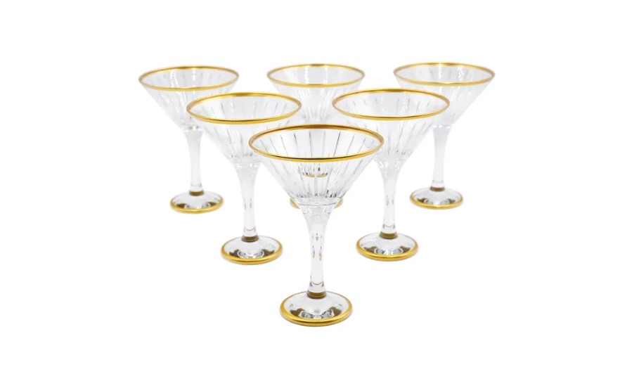 Набор стеклянных бокалов для мартини с золотым декором 6 шт.по 200 мл "Луч"