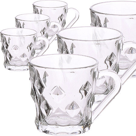 Набор кружек выполнен из прочного высококачественного прозрачного стекла. Кружки украшены рельефным узором в виде ромбов. Набор состоит из 6 ти кружек объемом в 180 мл. Кружки предназначены для подачи лимонада, сока, воды и других напитков. Ручка позволяет удобно держать кружку в руке. Кружки подходят для ежедневного использования. Посуда не впитывает запахи и легко моется. Кружки можно использовать в посудомоечной машине.