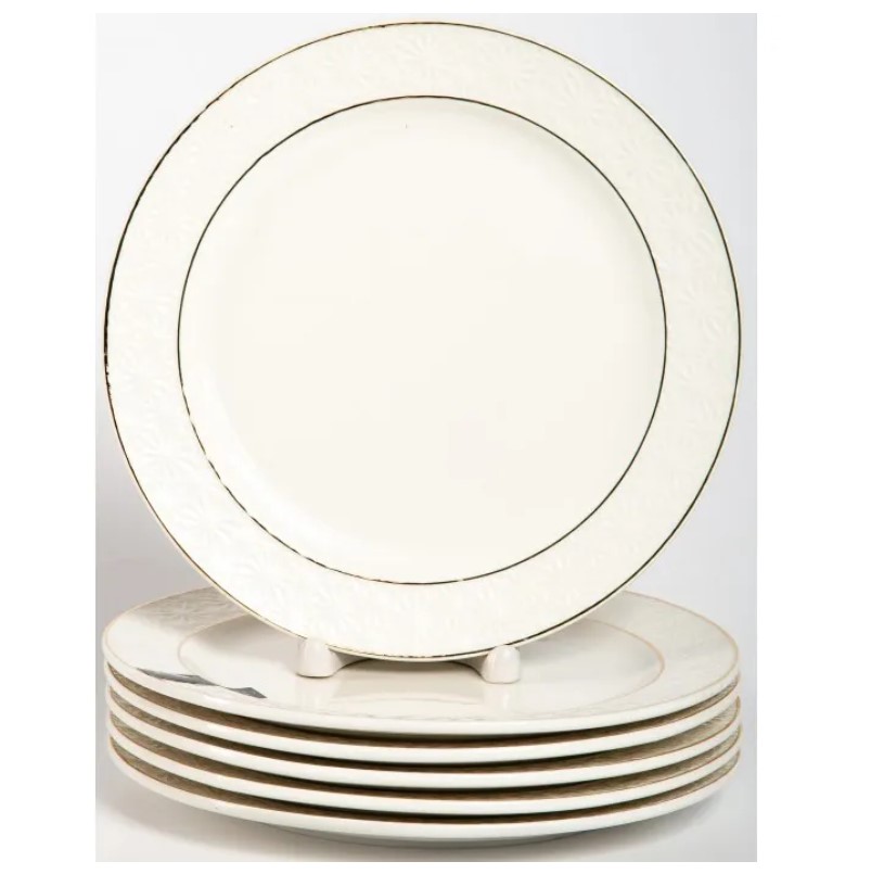 Набор тарелок Balsford "Грация нежность", 6 шт (арт. 179-01020). Золотая обводка, глазурованное покрытие, рельефный дизайн.