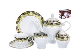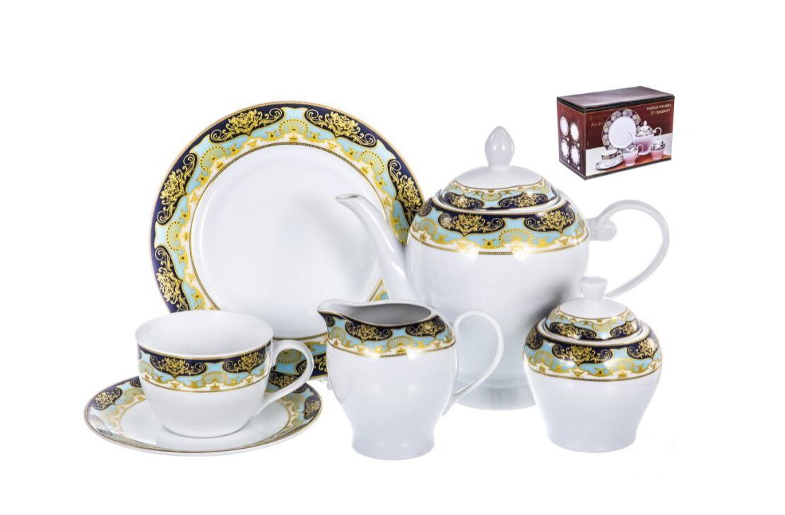 БРИСТОЛЬ ДЭВИД, набор посуды (21) 6 чашек 220мл + 6 блюдец + 6 мелких тарелок 200мм + чайник 1000МЛ с крышкой + сахарница 300МЛ с крышкой+ молочник 300МЛ, материал фарфор SUPERWHITE PORCELAIN, подарочная упаковка