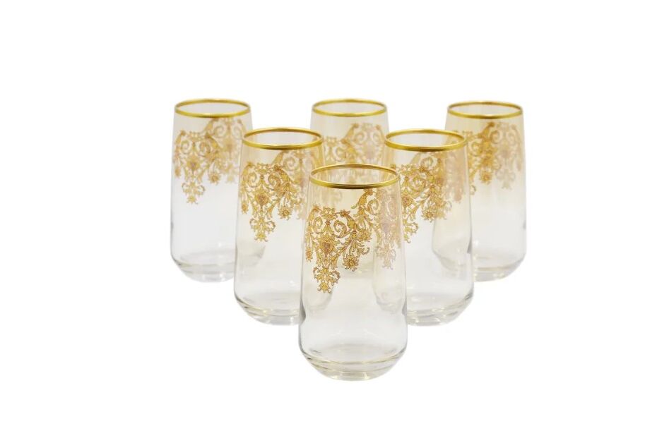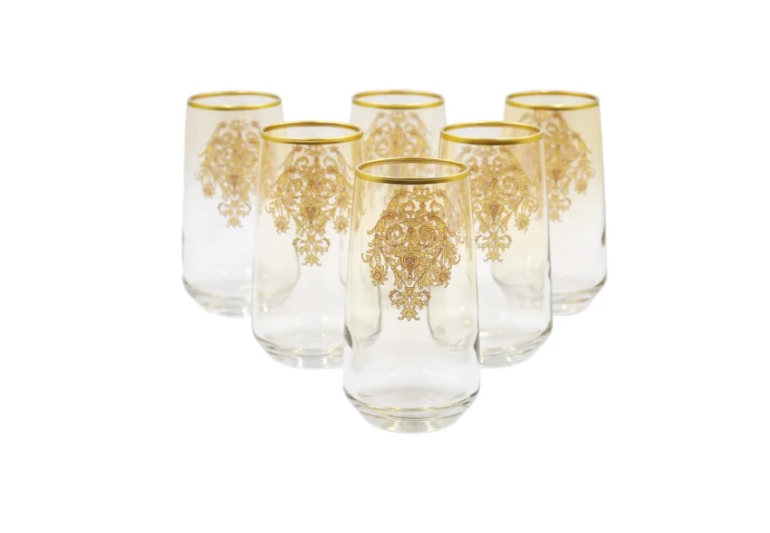 Набор стеклянных стаканов 500мл Decores DCS1055 для воды с золотым декором 6 шт.
