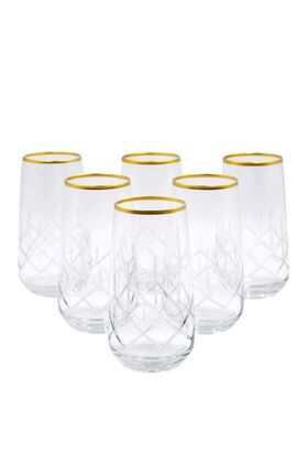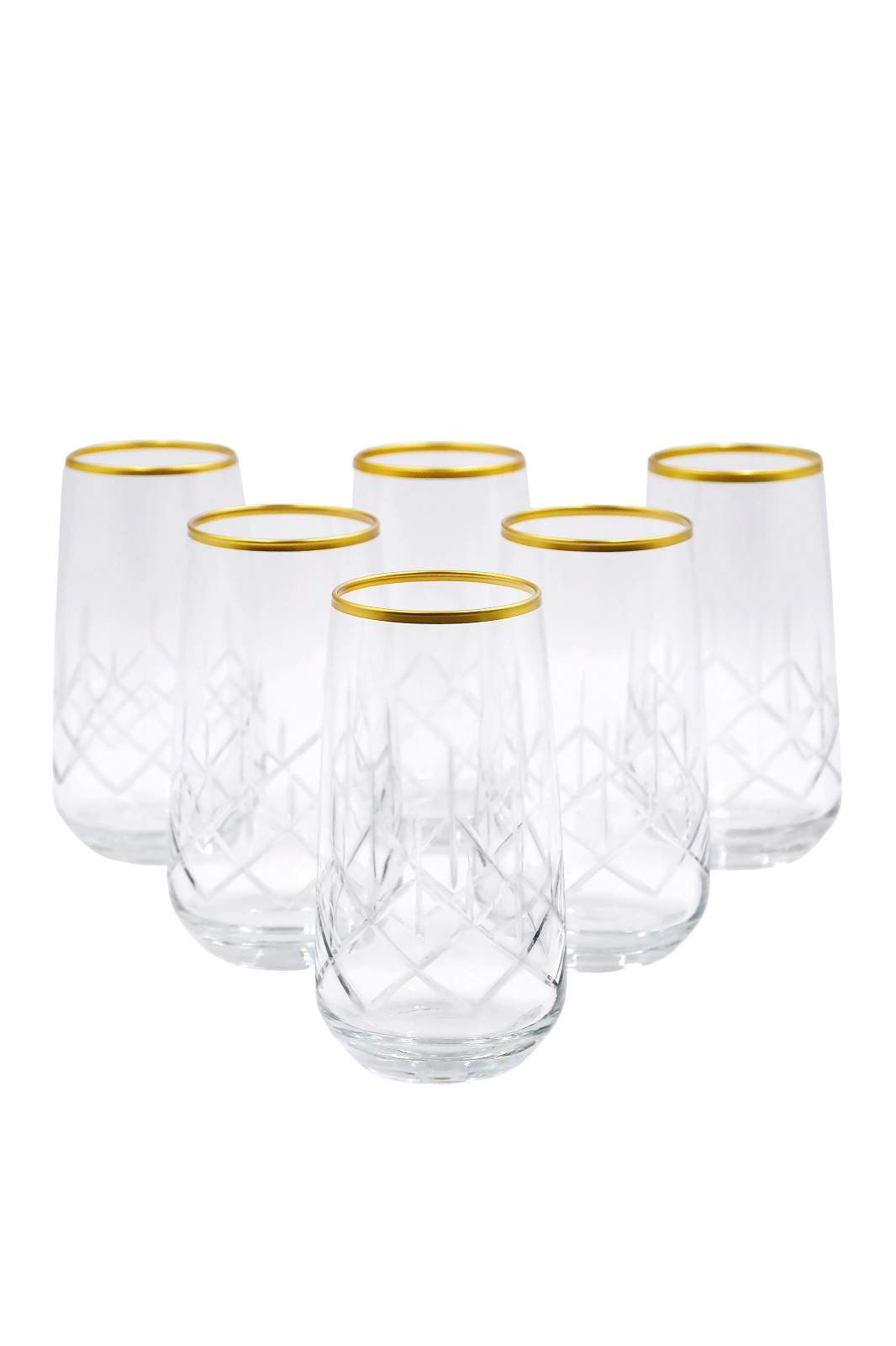 Набор стеклянных стаканов с золотым декором для воды 6шт. по 500мл."Кристалл"