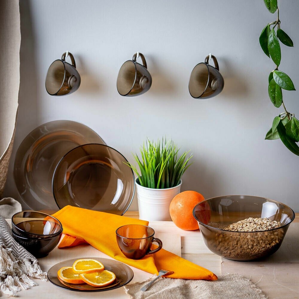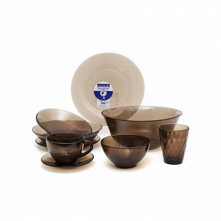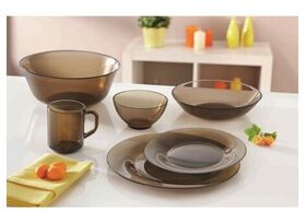 Столовые сервизы бренда Luminarc изготовлены из высококачественного ударопрочного стекла, которое устойчиво к появлению царапин, внешним повреждениям и перепадам температур. Стекло не мутнеет со временем и не выделяет вредных веществ. По сравнению с обычной посудой, оно в 2-3 раза прочнее, и при падении разбивается на крупные неострые куски. В процессе использования стекло не тускнеет и не впитывает запахи Можно мыть в посудомоечной машине и использовать в СВЧ-печи.