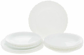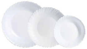 Столовый набор марки Luminarc придется по душе любой хозяйке, ценящей в посуде практичность и надежность. Набор рассчитан на шесть персон и состоит из восемнадцати предметов: суповых, обеденных и десертных тарелок. Белоснежная посуда с изящным рельефным бордюром украсит ежедневный завтрак, обед или ужин и найдет свое место на любой кухне или столовой. Столовый набор, изготовленный из ударопрочного стекла, прослужит долго, сохранив первоначальный внешний вид. Тарелки можно мыть в посудомоечной машине и использовать в СВЧ-печи.