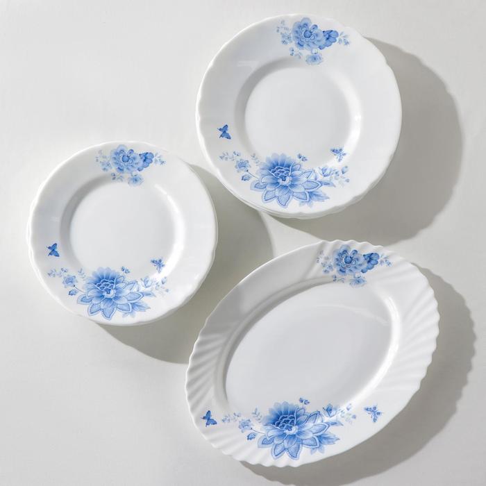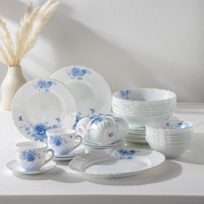 Комплектация Чашка – 200 мл, 6 шт;блюдце – d=14, 6 шт;тарелка обеденная – d=23 см, 6 шт;миска суповая – d=20 см, 900 мл, 6 шт;тарелка десертная – d=20 см, 6 шт;салатник – d=14 см, 600 мл, 6 шт; блюдо овальное – d=30 см, 1 шт.