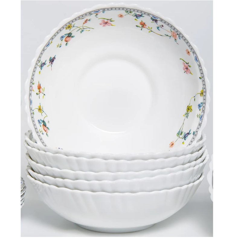 6 мелк.тарелок 190мм + 6 салатников 650мл 175мм + салатник 950мл 200мм,