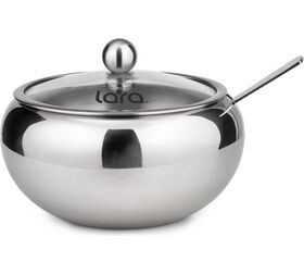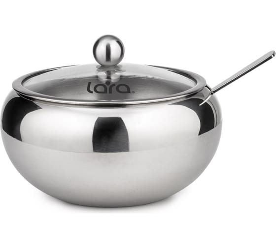 Сахарница с ложкой Lara 460 мл, сталь, крышка из закаленного стекла LR08-35 предназначена для хранения сыпучих продуктов.