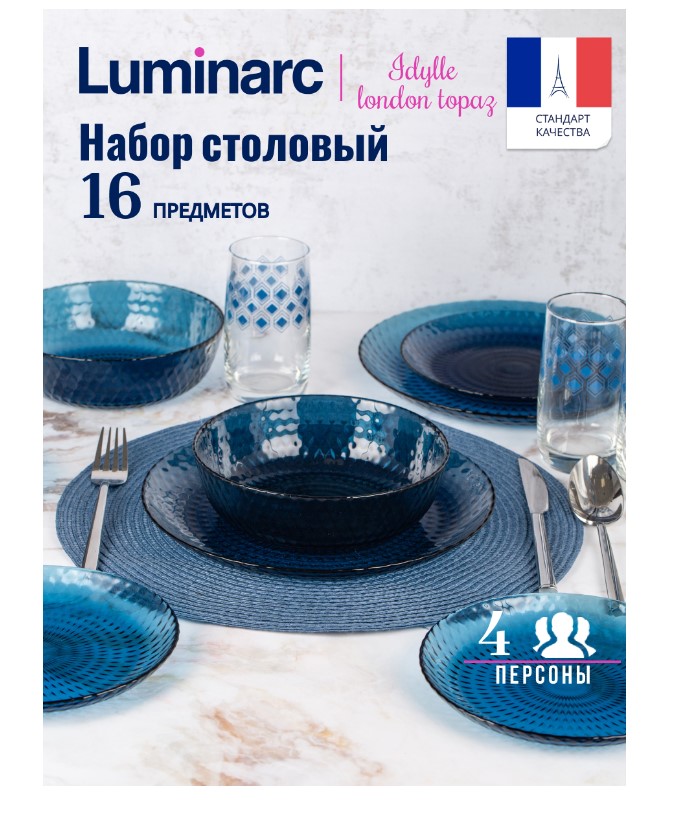 Сервиз Luminarc Idylle Идиллия Лондон Топаз, 16 предм + стаканы Ромб Топаз 330 мл.
