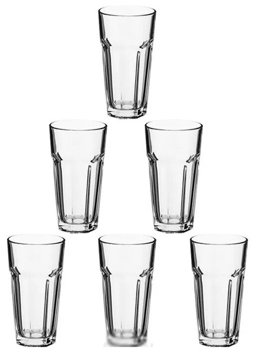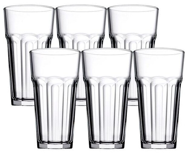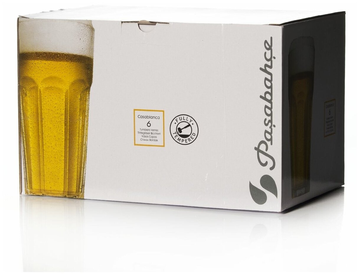 Набор Pasabahce "Casablanca" состоит из шести стаканов, изготовленных из прочного натрий-кальций-силикатного стекла.