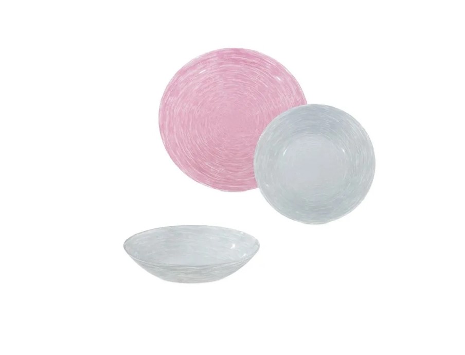Столовый сервиз BRUSHMANIA PINK & GRANIT из 18 предметов — практичная посуда для сервировки стола и подачи блюд. Набор изготовлен из закаленного стекла. Прочный материал изделия устойчив к появлению дефектов, стекло не мутнеет и сохраняет первоначальный вид. Гладкая стеклянная поверхность не впитывает запахи и не окрашивается.