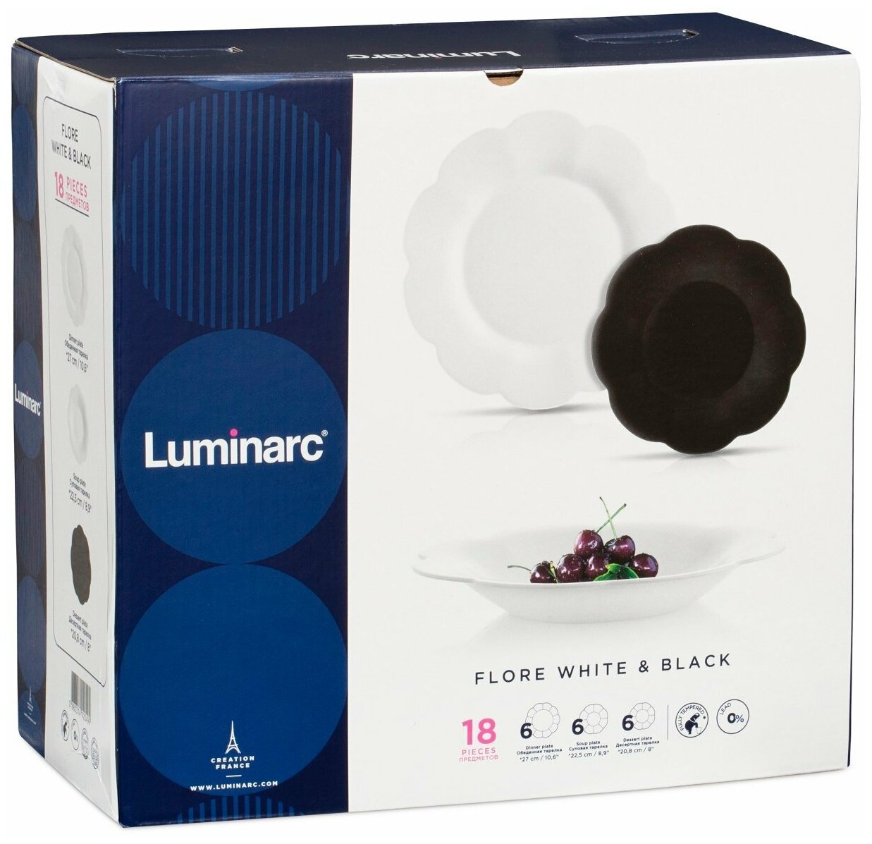 Столовый набор Luminarc Flore Opal & Black Флоре Черно-белый, 18 предметов.