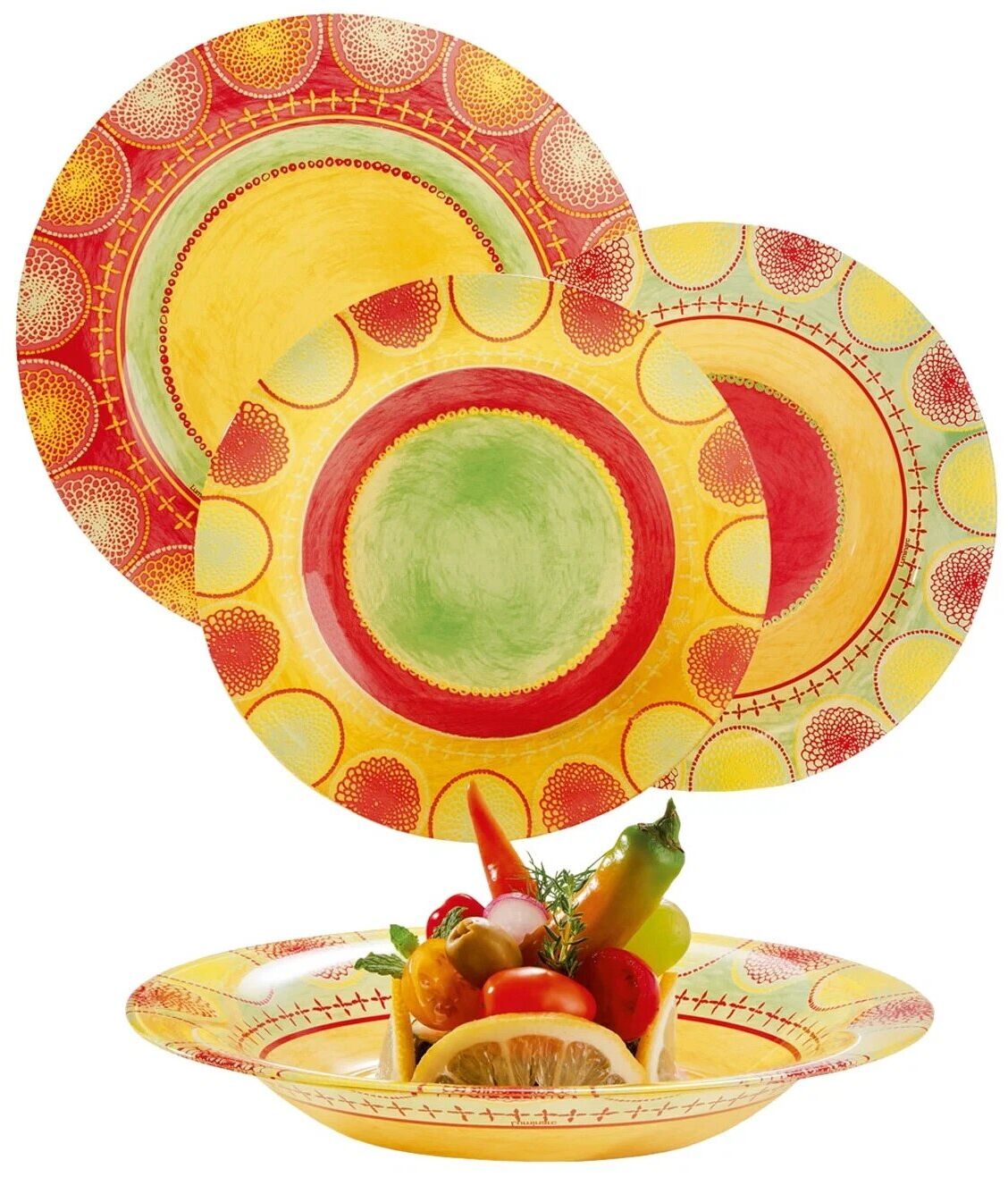 Комплектация:тарелка обеденная 25 см - 6 шт, тарелка глубокая 21,5 см - 6 шт, тарелка десертная 19,5 см - 6 шт