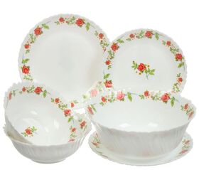 Обеденный сервиз изготовлен из стеклокерамики, имеет стильный дизайн и качественно нанесенный рисунок. Посуда отличается прочностью, гигиеничностью и долгим сроком службы, она устойчива к появлению царапин и резким перепадам температур, поэтому её можно использовать в посудомоечной машине и микроволновой печи.