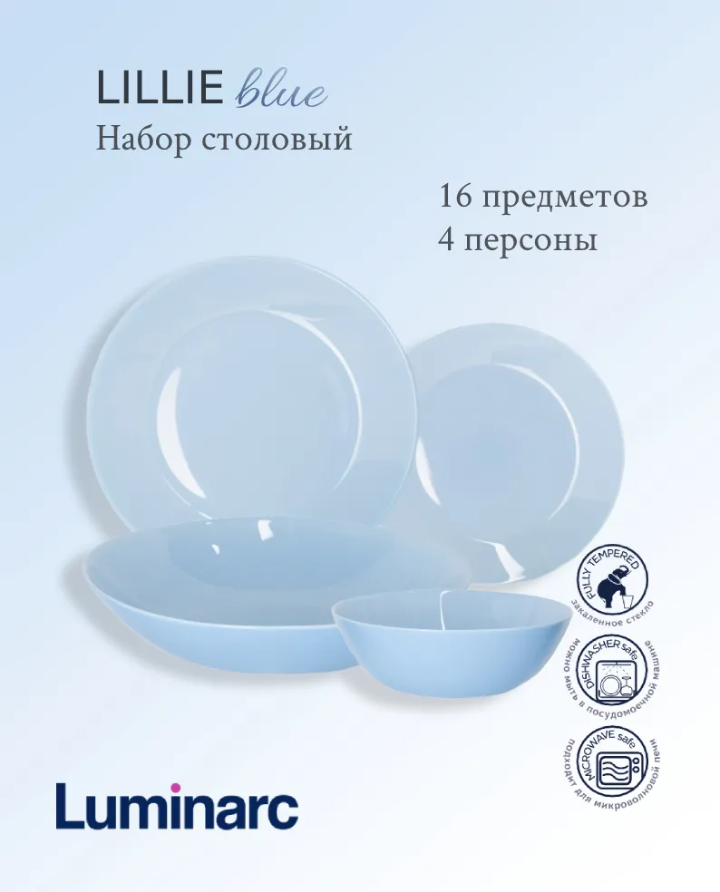 Столовый сервиз Luminarc Lillie Light Blue Лили Лайт Блю - 16 предметов.