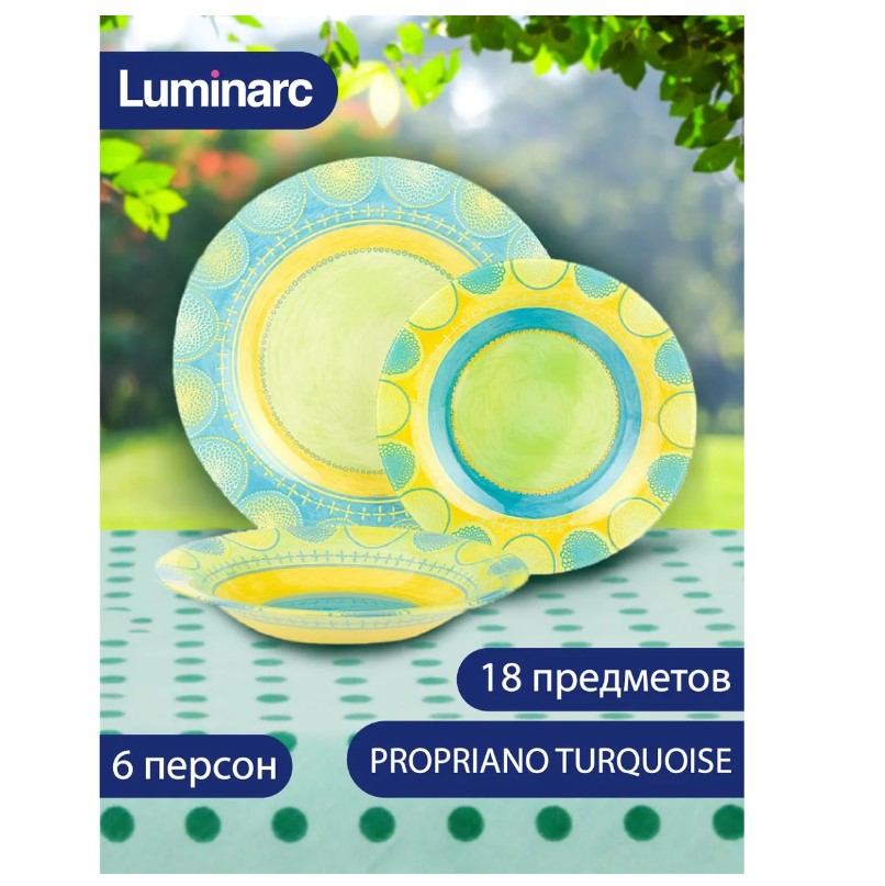 Столовый сервиз изготовлен из упрочненного стекла. Он будет отлично смотреться как на повседневном, так и на праздничном столе, станет отличным подарком. Сервиз можно мыть в посудомоечной машине и использовать в СВЧ. Luminarc - бренд высококачественной посуды, выпускаемой французским производителем посуды Arc International. Торговая марка Luminarc выпускает свою продукцию с 1948 года. Ее главной отличительной особенностью является качество и ударопрочность. С каждым годом компания совершенствует технологии и улучшает качество своего стекла. Также к плюсам данного материала можно отнести абсолютно гладкую поверхность, препятствующую проникновению бактерий и посторонних запахов в посуду.