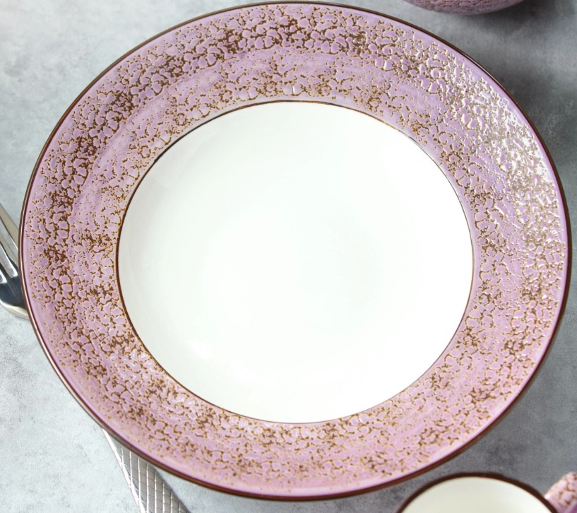 Цвет тарелки напоминает акварельный рисунок: нежнейший и воздушный, он словно растворяется в белом фарфоре, оставляя за собой легкий шлейф эмоций. Оттенок безмятежности и чувственности, который навевает мечтательные настроения.