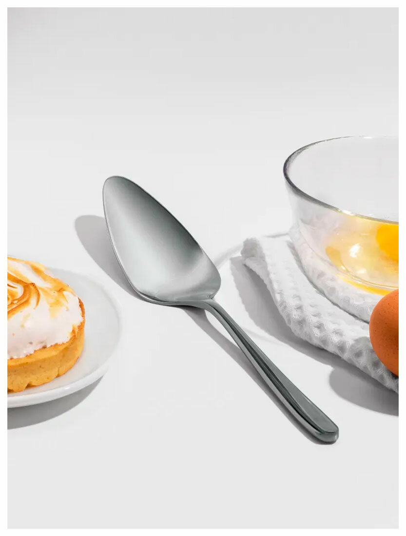 Набор состоит из 6-ти десертных вилок и лопатки для торта. Длина лопатки 25 см. Изделия изготовлены из высококачественной нержавеющей стали. Набор навешен на блистере.