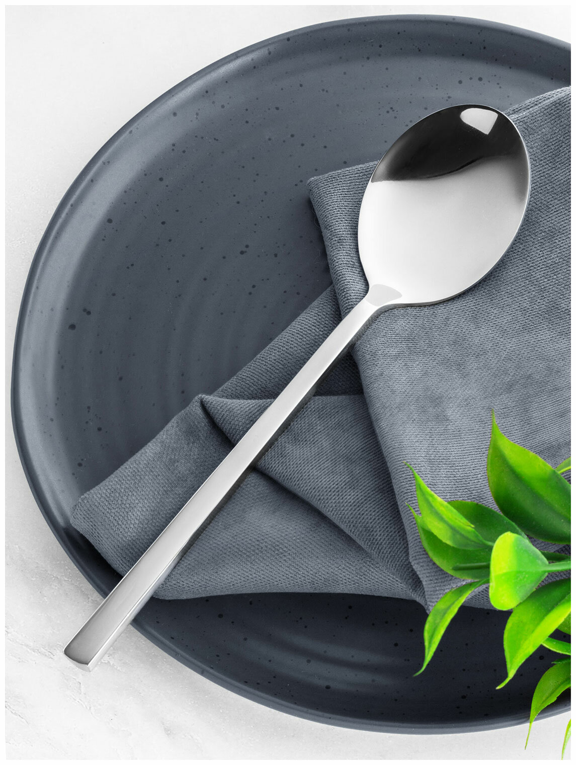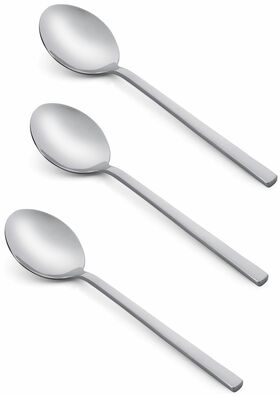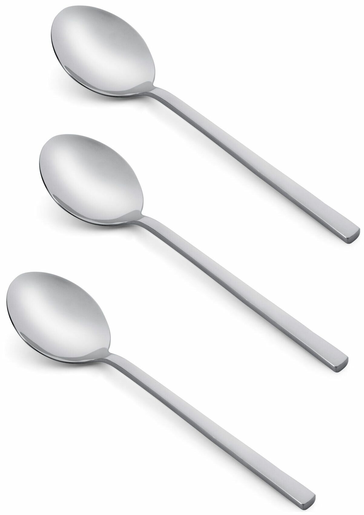 Столовые ложки изготовлены из высококачественной нержавеющей стали. Зеркальная полировка сохранит блеск на долгое время, а универсальный дизайн подойдёт для любой кухни. Предмет удобен в использовании. Можно мыть в посудомоечной машине. В комплектацию входят 3 столовые ложки на блистере. В коллекцию приборов Estro так же входят чайные ложки, столовые вилки и сервировочные ножи.