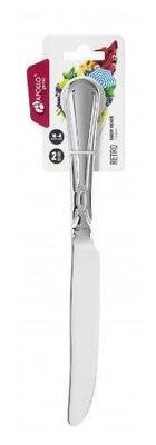 В наборе 2 столовых ножа. Материал изготовления: нержавеющая сталь 18-0. Предназначено для домашнего использования.