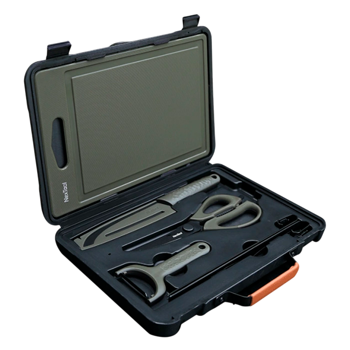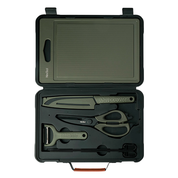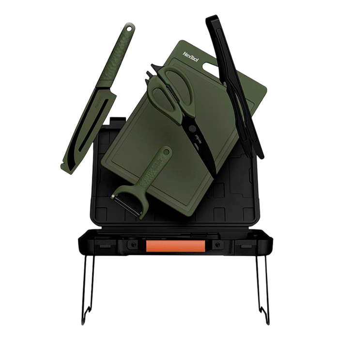 Контейнер для хранения, нож для чистки овощей, многофункциональные ножницы, нож сантоку, разделочная доска, щипцы для барбекю