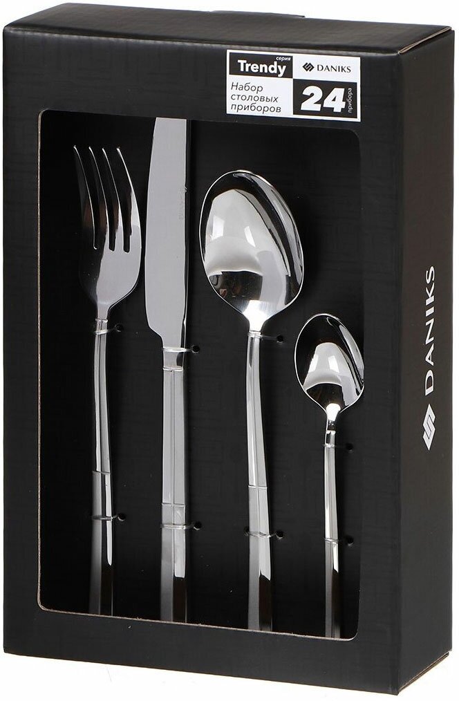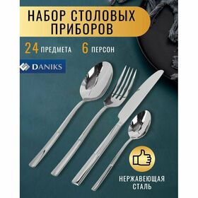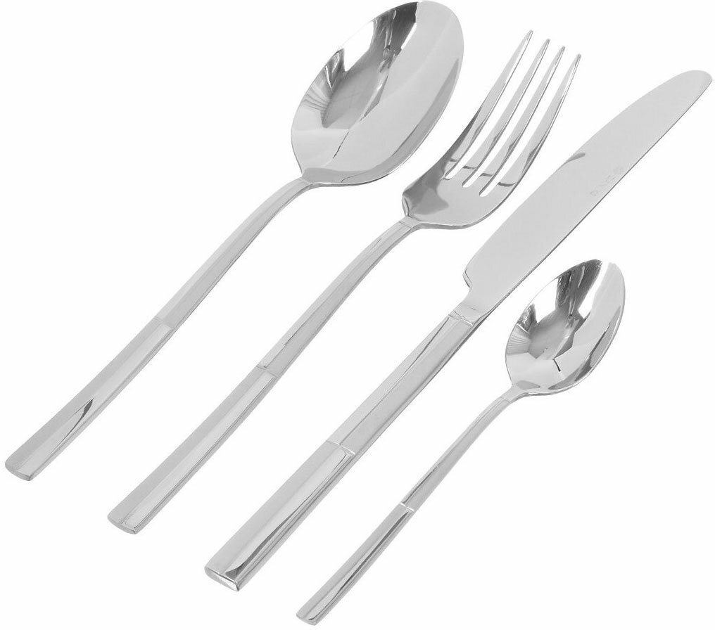 Набор столовых приборов выполнен из нержавеющей стали высочайшего качества и отличаются особой прочностью и долговечностью в использовании. Приборы рассчитаны на шесть персон. Благодаря сочетанию матовой и зеркальной отделки в виде разделяющих линий, приборы придадут изысканную завершенность в оформлении вашего стола. Зубья вилок достаточно длинные, чтобы выглядеть элегантно, но при этом они удобны для использования; ножи хорошо режут, а ложки глубокие и вместительные, оптимальны для супов и бульонов.