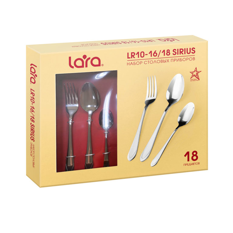 Столовые приборы Sirius – это традиционный столовый набор. Классический дизайн, широкие края рукоятки и доступная цена. Однако, толщина в 3 мм – это уже не просто предмет для повседневного использования, но еще качество и стиль. Столовые приборы LARA изготовлены из стали с 18-процентным содержанием хрома и имеют зеркальную полировку класса «А». Особое внимание уделено остроте зубьев вилки. Труднодоступные места между зубьями, в которых могут скапливаться остатки пищи, отполированы вручную так, чтобы сделать поверхность ровной и гладкой и повысить гигиеничность изделий. Глубина столовой ложки не менее 7 мм, что обеспечивает оптимальную вместительность.