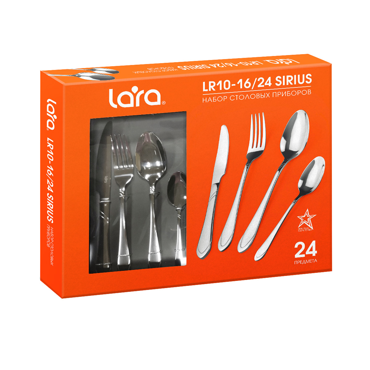 Столовые приборы Sirius – это традиционный столовый набор. Классический дизайн, широкие края рукоятки и доступная цена. Однако, толщина в 3 мм – это уже не просто предмет для повседневного использования, но еще качество и стиль. Столовые приборы LARA изготовлены из стали с 18-процентным содержанием хрома и имеют зеркальную полировку класса «А». Особое внимание уделено остроте зубьев вилки. Труднодоступные места между зубьями, в которых могут скапливаться остатки пищи, отполированы вручную так, чтобы сделать поверхность ровной и гладкой и повысить гигиеничность изделий. Глубина столовой ложки не менее 7 мм, что обеспечивает оптимальную вместительность.