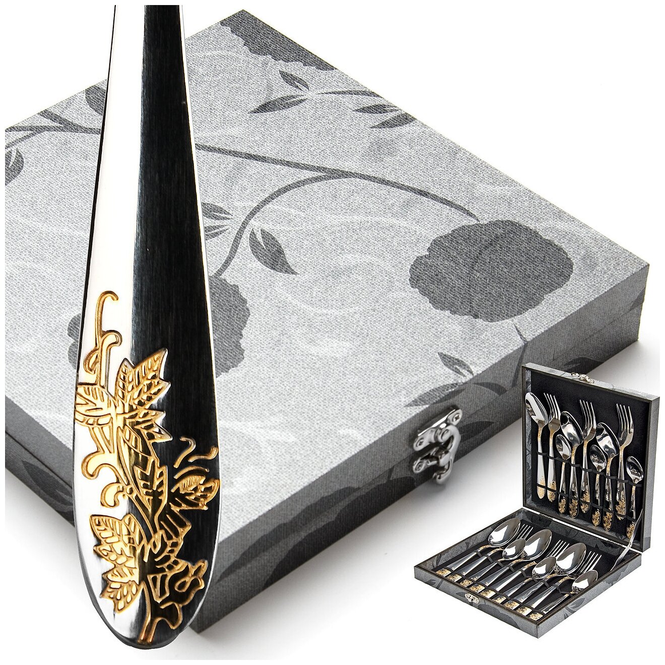 Набор столовых приборов MAYER&BOCH, безусловно, займет достойное место на любой кухне. Набор подходит как для ежедневного использования, так и для торжественных случаев. Набор упакован в красивый подарочный деревянный кейс. Подходит для мытья в посудомоечной машине.