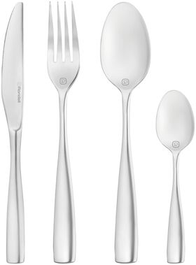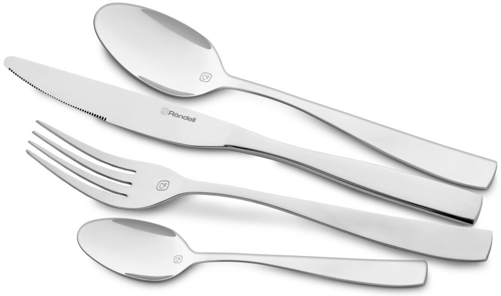 шесть вилок, шесть столовых ложек, шесть ножей и шесть чайных ложек