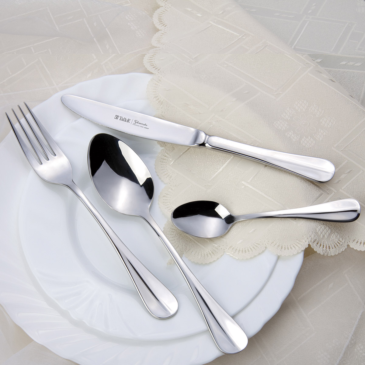 Отлично сбалансированные ручки приборов позволяют приборам удобно ложиться в руку. Приборы TalleR отличают идеальная обработка края и высокое качество полировки.