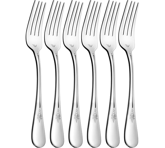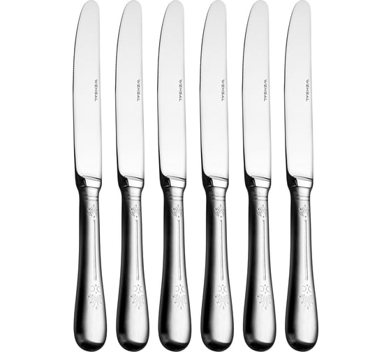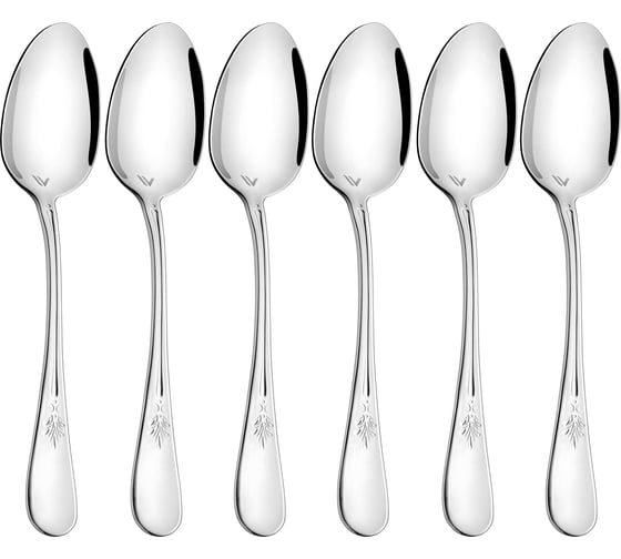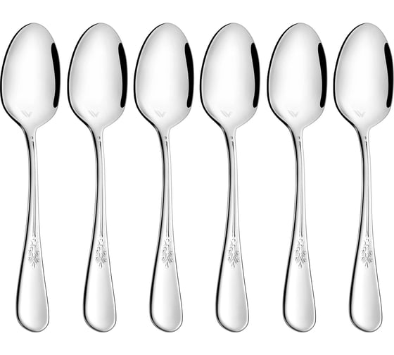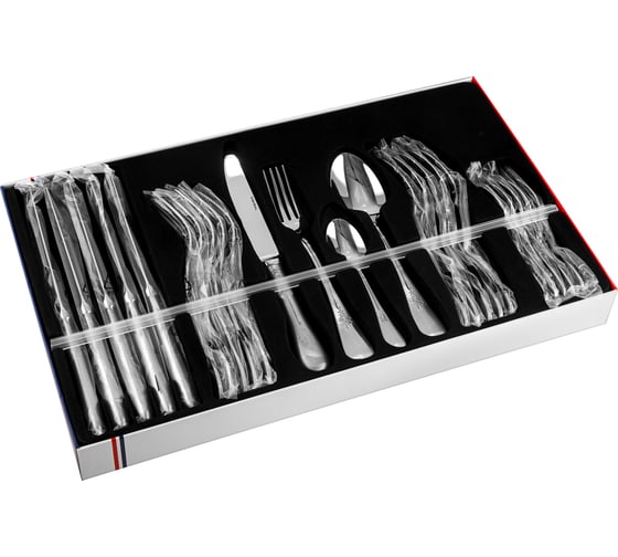 6 столовых ложек, 6 столовых вилок, 6 столовых ножей, 6 чайных ложек