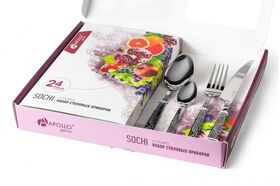 Столовые приборы "Sochi" выполнены из высококачественной нержавеющей стали. Они предназначены как для ежедневного использования, так и для сервировки стола. Благодаря классическому дизайну столовые приборы "Sochi" прекрасно подойдут к любой кухне и будут уместны за любым праздничным столом.