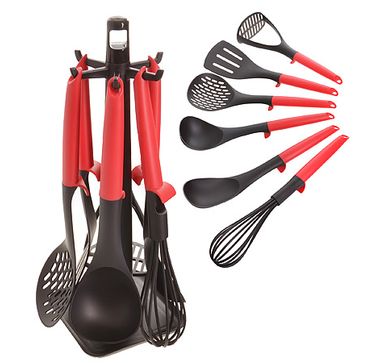 Комплектация 6 предметов: половник, ложка, шумовка, картофелемялка, лопатка с прорезями, венчик
