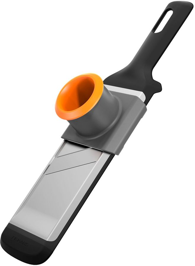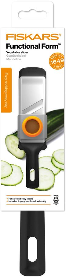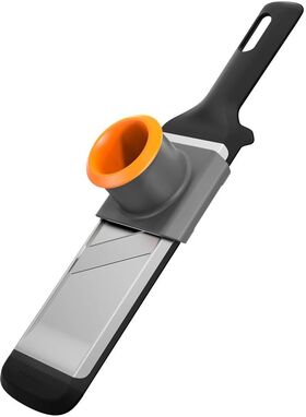 Подходит для нарезки овощей. Специальный предохранитель защитит пальцы от порезов, достаточно положить небольшой кусочек в отверстие под предохранитель и можно безопасно использовать овощерезку. Специальное отверстие на рукоятке для удобного вертикального хранения. Можно мыть в посудомоечной машине.
